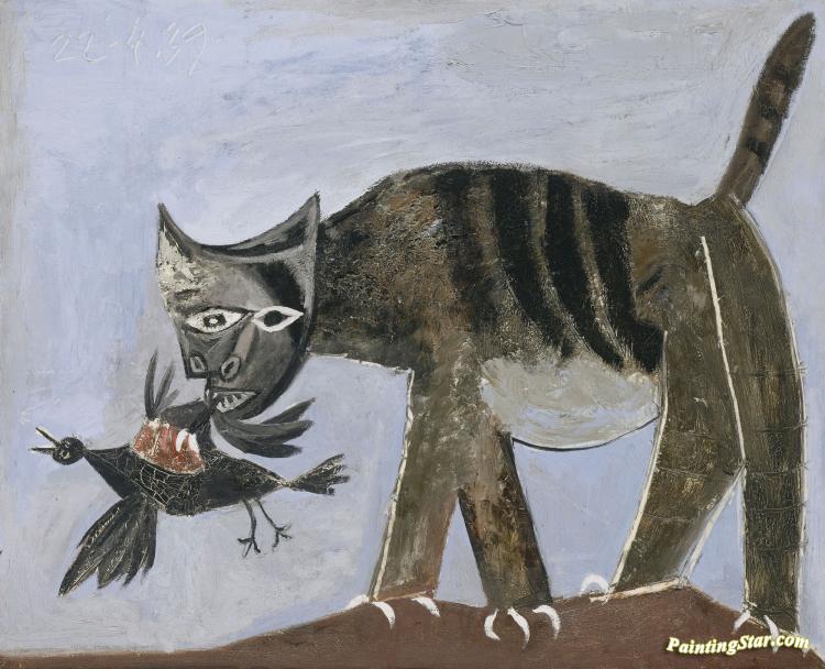 Chat Saisissant Un Oiseau, Art Painting by Pablo Picasso