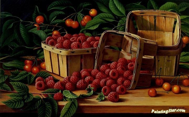Cherries And Raspberries In A Basket, Art Painting by Levi Wells Prentice