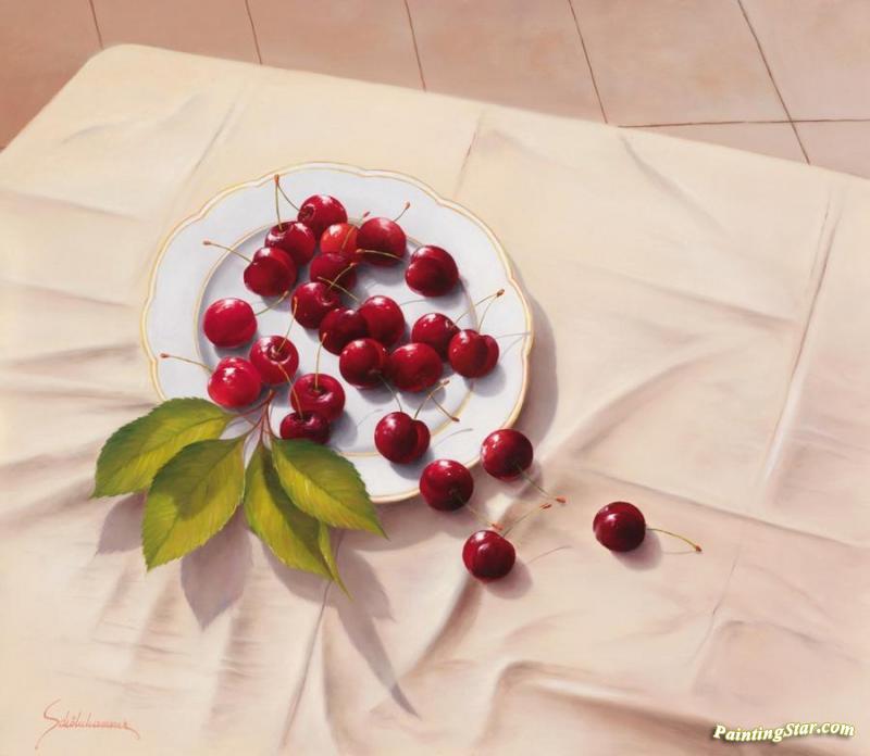 Cherries On A Table, Art Painting by Heinz Scholnhammer