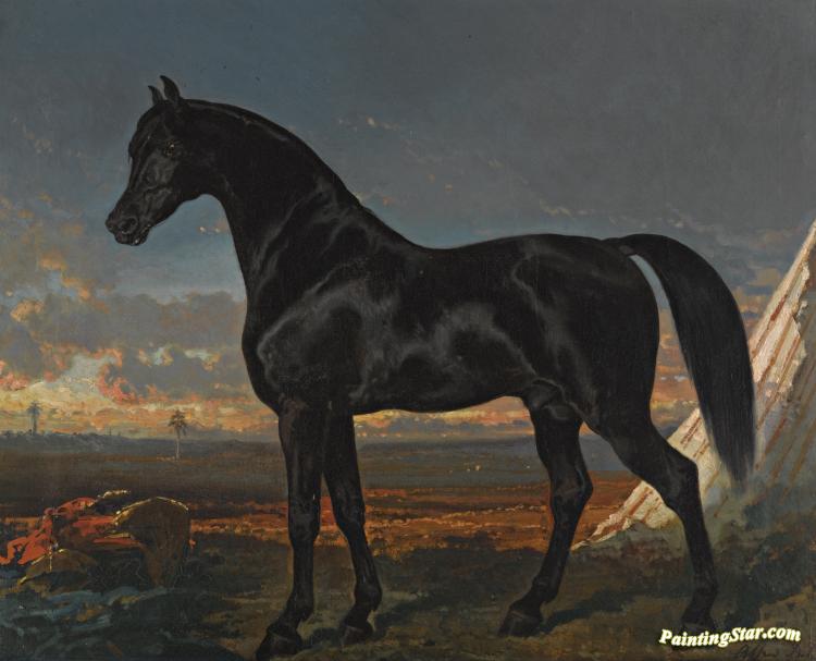 Cheval Noir Au Palmier, Art Painting by Alfred de Dreux