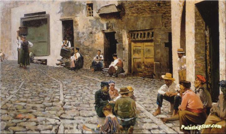 Chiacchiere A Riomaggiore, Art Painting by Telemaco Signorini