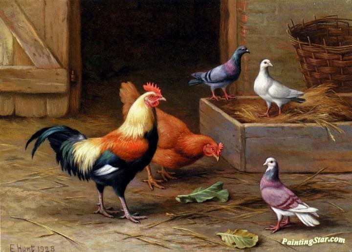 Chickens, Pigeons and a Dove, Art Painting by Edgar Hunt