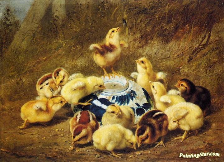 Chicks and Delft Bowl, Art Painting by Arthur Fitzwilliam Tait
