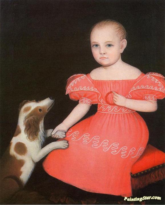 Child In Pink With Her Spaniel, Art Painting by Ammi Phillips