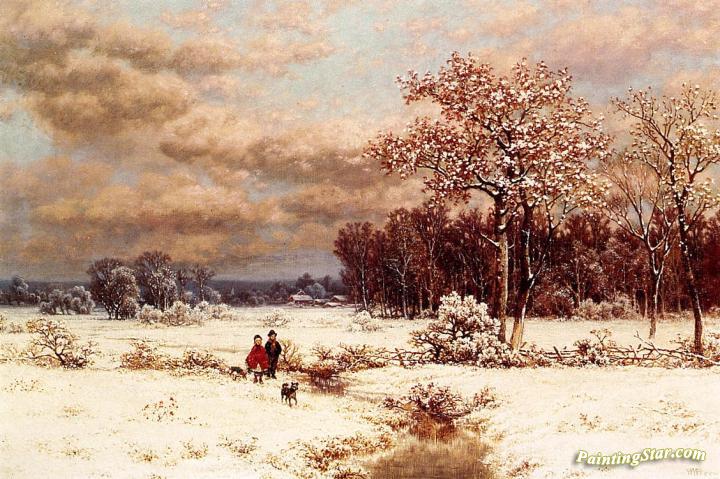 Children In A Snowy Landscape, Art Painting by William Mason Brown