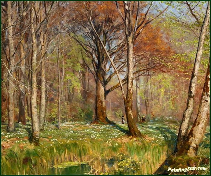 Children in a Spring Forest with Anemones in Bloom, Art Painting by Hans Andersen Brendekilde