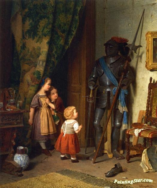 Children In The Painter's Studio, Art Painting by August Friedrich Siegert