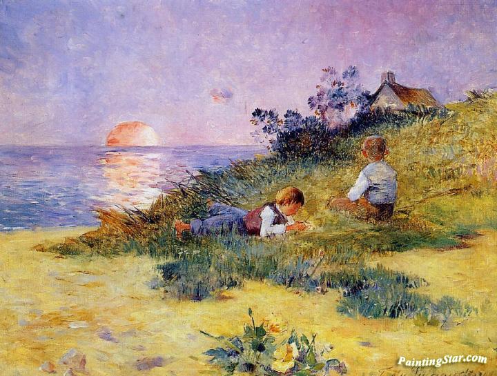Children on a Dune, Art Painting by Ferdinand du Puigaudeau