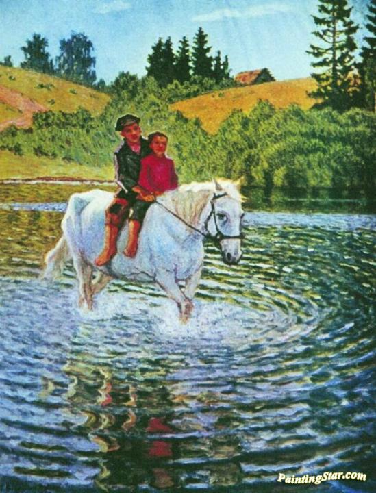 Children on a Horse, Art Painting by Nikolai Petrovich Bogdanov-belsky