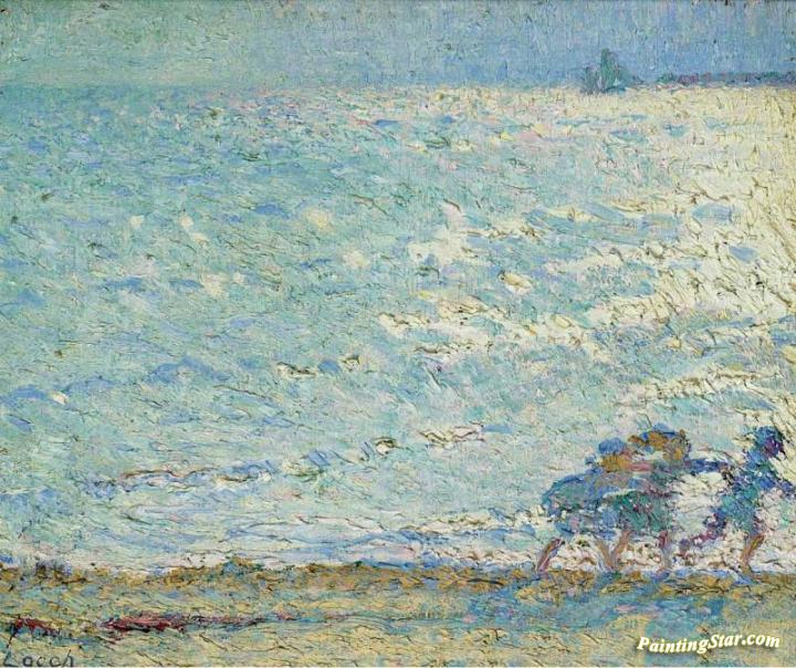 Children On The Beach With Breakers, Art Painting by William John Leech