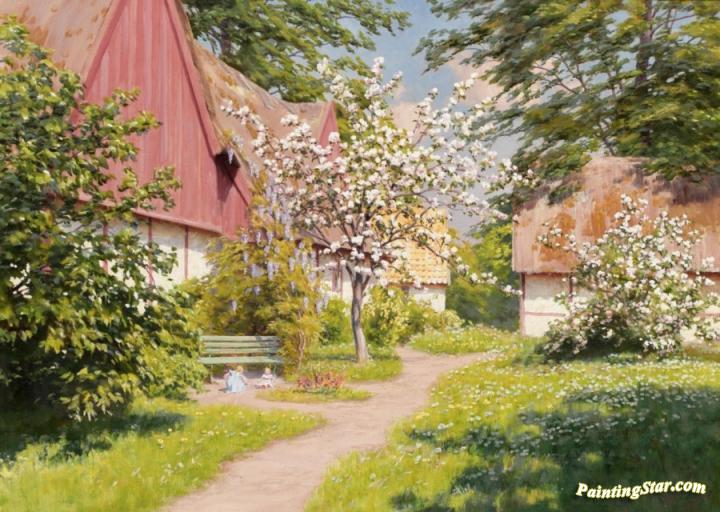 Children playing at the old farm, Art Painting by Johan Krouthén