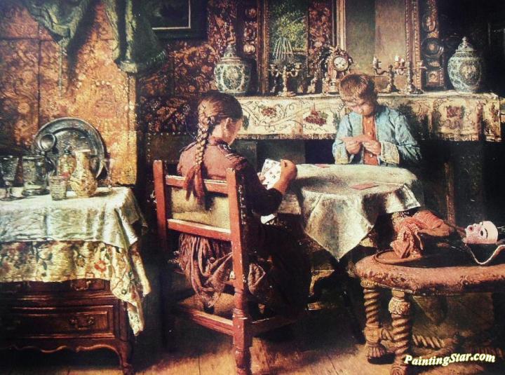 Children Playing Cards, Art Painting by Henri de Braekeleer