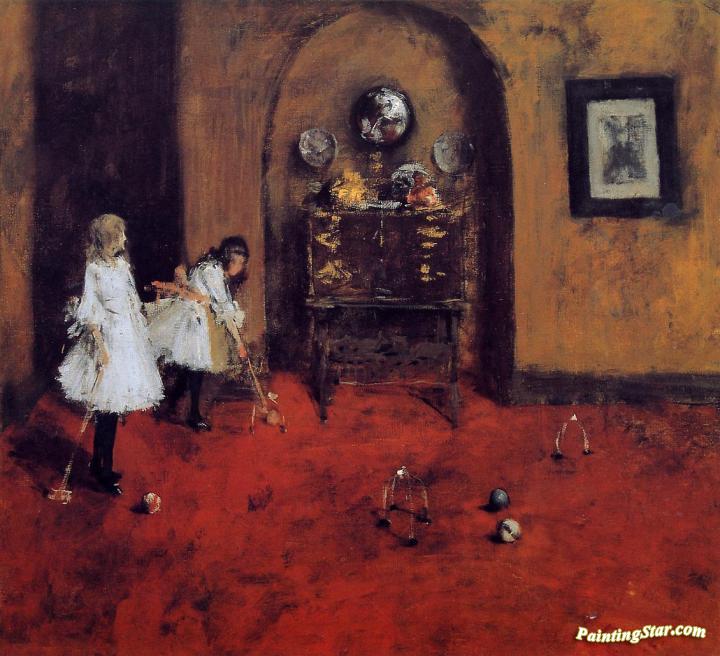 Children Playing Parlor Croquet (sketch), Art Painting by William Merritt Chase