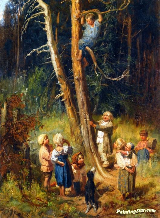Children Raiding Nests in the Forest, Art Painting by Victor Mikhail Vasnetsov