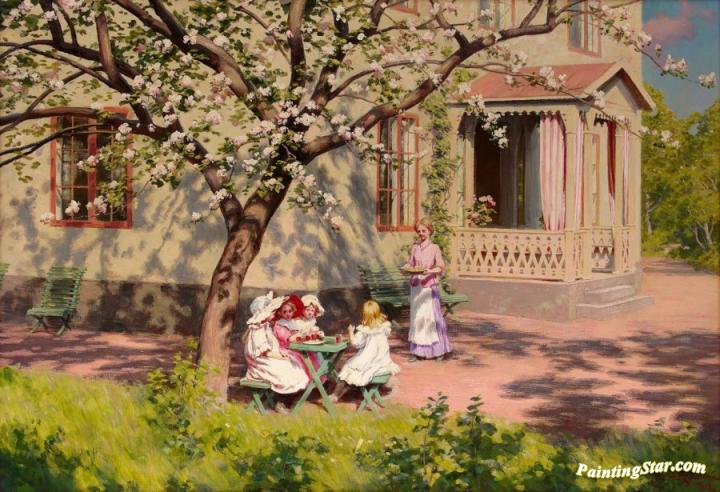 Children's Party in the Garden, Art Painting by Johan Krouthén