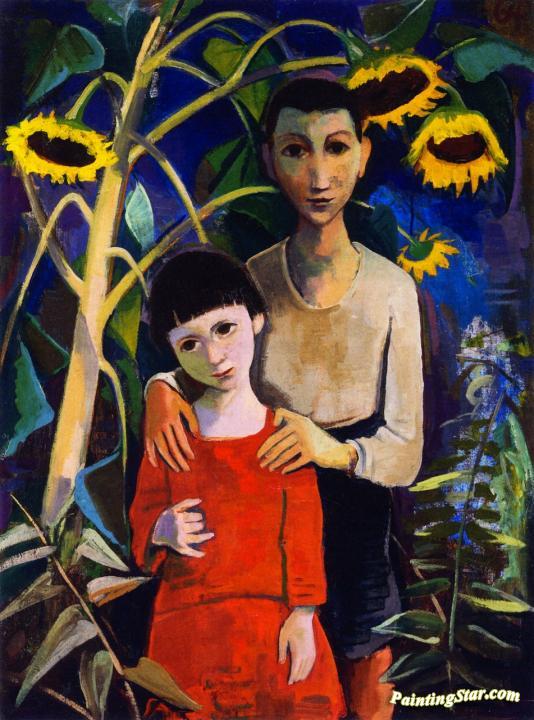 Children Under Sunflowers, Art Painting by Karl Hofer