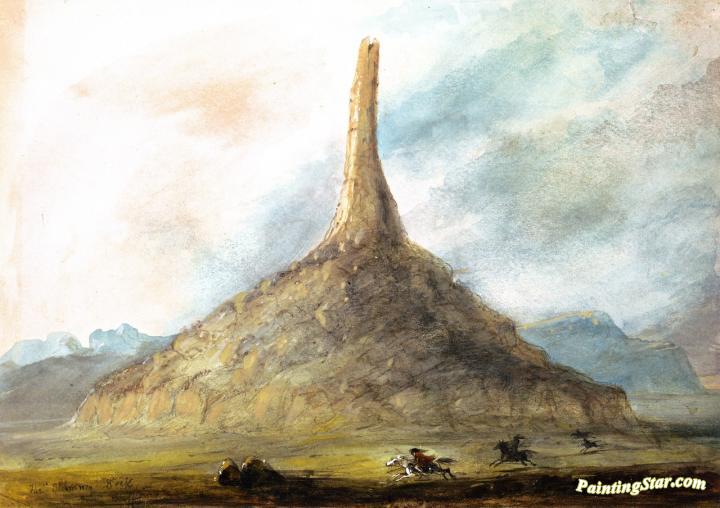 Chimney Rock near Scott's Bluff, Art Painting by Alfred Jacob Miller