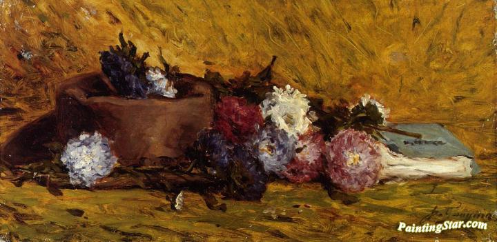 China Asters, Hat and Book, Art Painting by Paul Gauguin