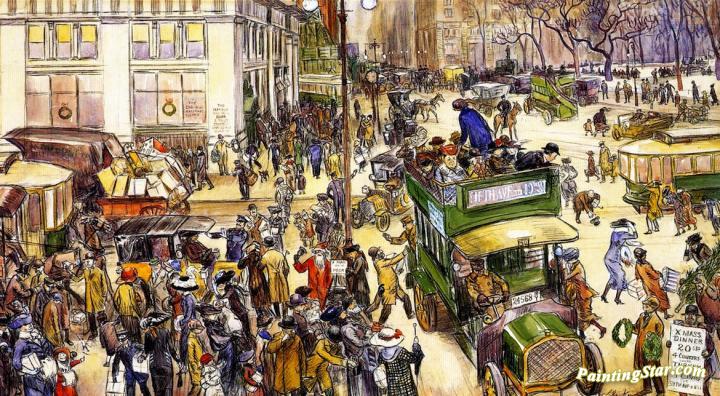 Christmas Shoppers, Madison Square, Art Painting by William James Glackens