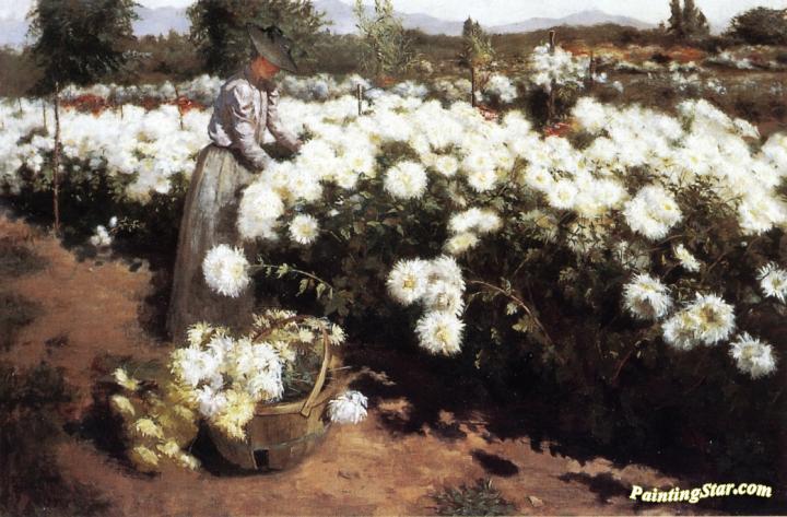 Chrysanthemum Garden in Southern California, Art Painting by Fannie Eliza Duvall