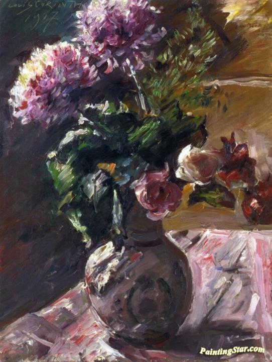 Chrysanthemums and Roses in a Jug, Art Painting by Lovis Corinth