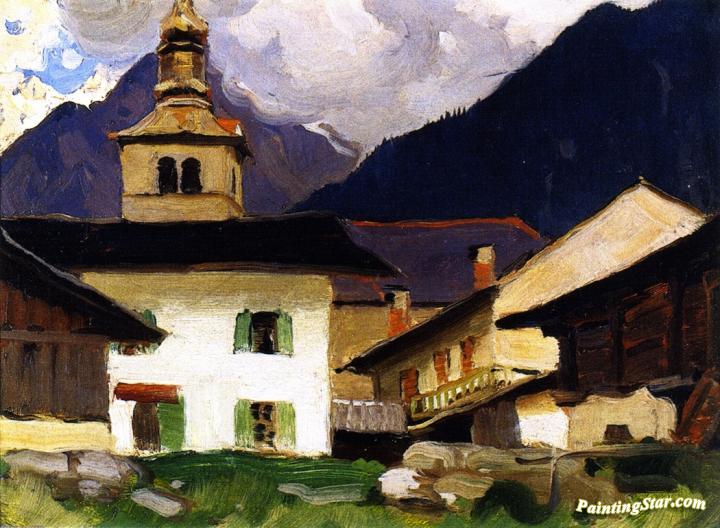 Church of Les Houches, Haute-Savoie, France, Art Painting by Clarence Gagnon