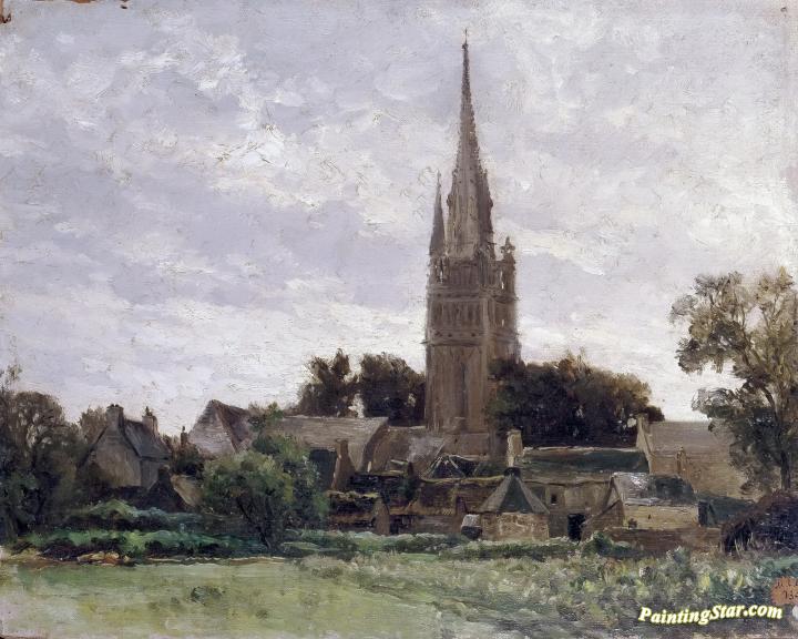 Church Tower near Douarnenez, Art Painting by Carlos de Haes
