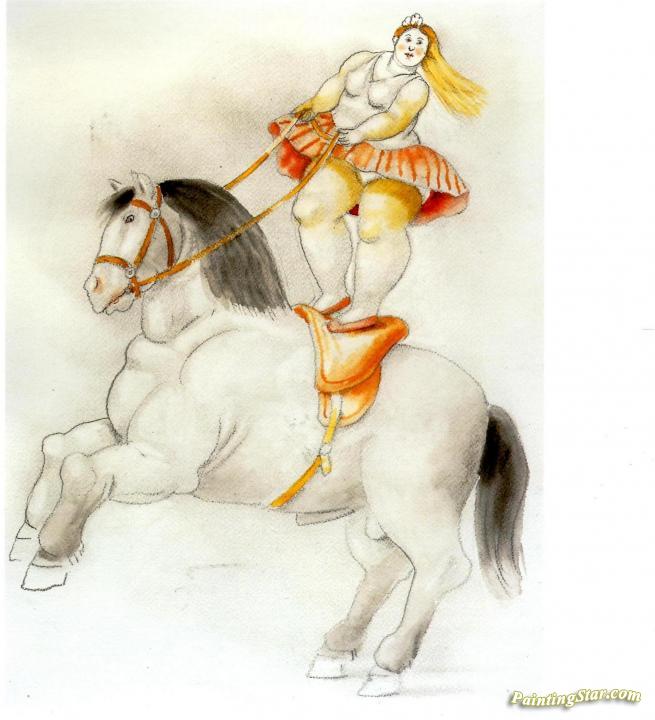 Circus Woman on a Horse, Art Painting by Fernando Botero