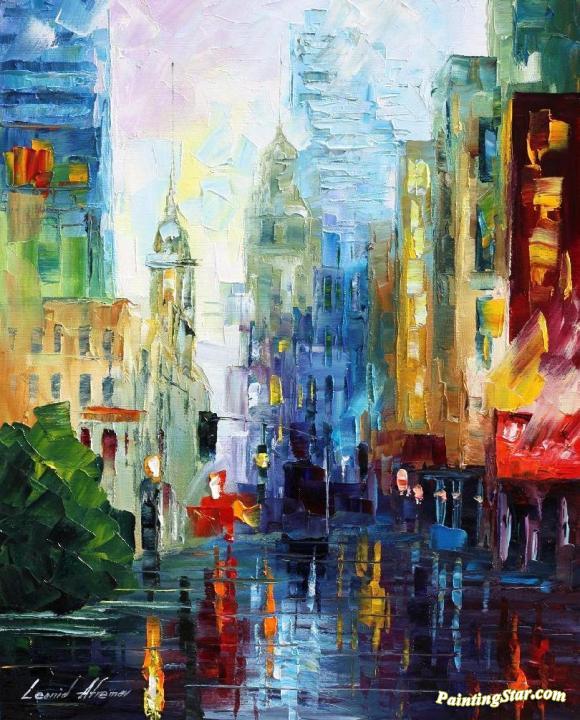 City after the rain, Art Painting by Leonid Afremov