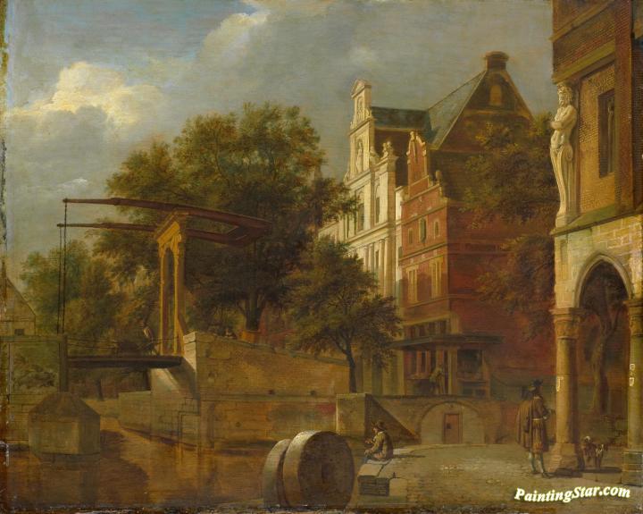 Cityscape with drawbridge, Art Painting by Jan van der Heyden