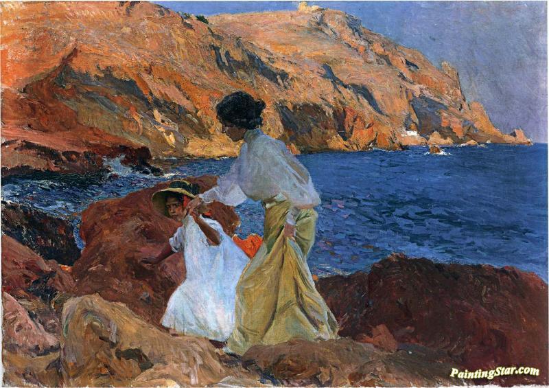 Clotilde And Elena On The Rocks At Javea, Art Painting by Joaquin Sorolla y Bastida