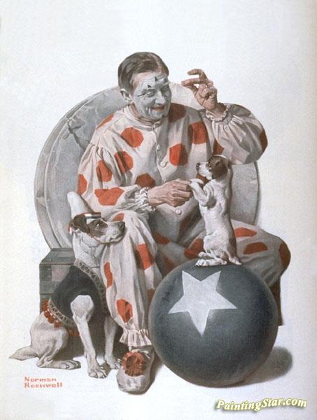 Clown Training Dogs, Art Painting by Norman Rockwell