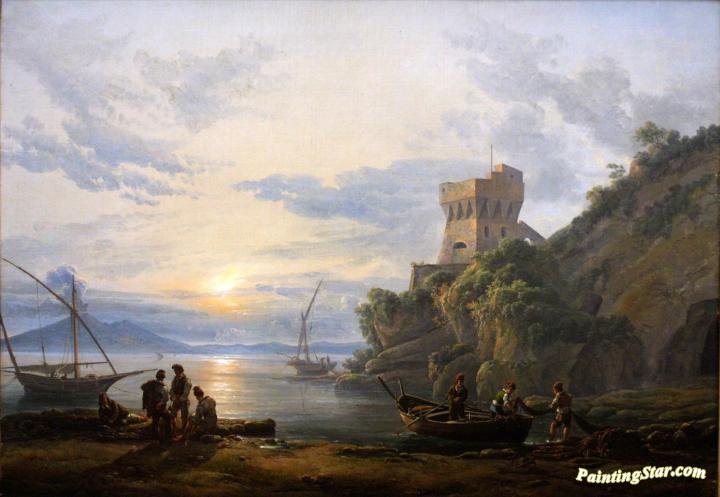 Coast near Castellammare in the morning mist, Art Painting by Johan Christian Dahl