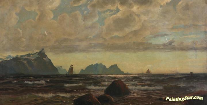 Coastal Landscape with Boats (Kystlandskap med båter), Art Painting by Thorolf Holmboe
