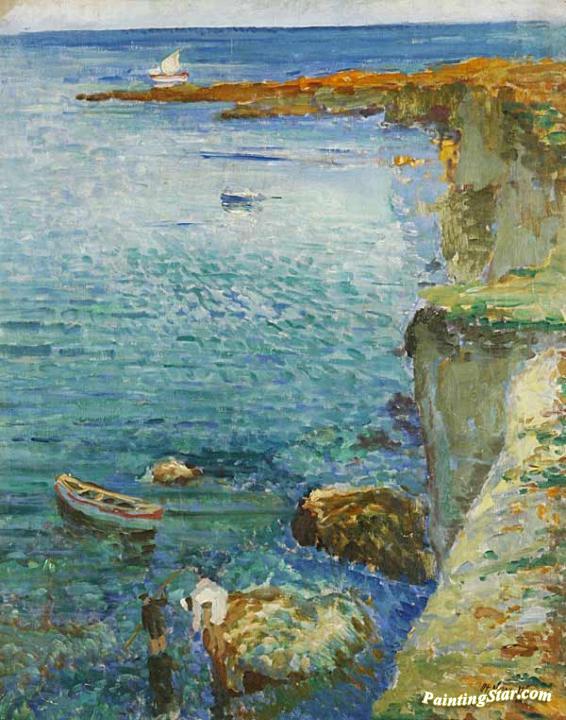 Coastal Rocky Landcape - The Cliffs, Art Painting by Otakar Nejedlý