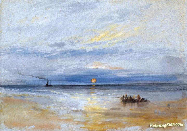 Coastal View at Sunset with Fishing Boat Returning to Port, Art Painting by Joseph Mallord William Turner
