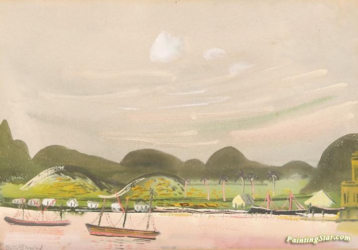 Coastal View With Mountains, South America, Art Painting by Boris Grigoriev
