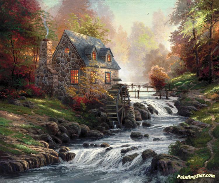 Cobblestone Mill, Art Painting by Thomas Kinkade