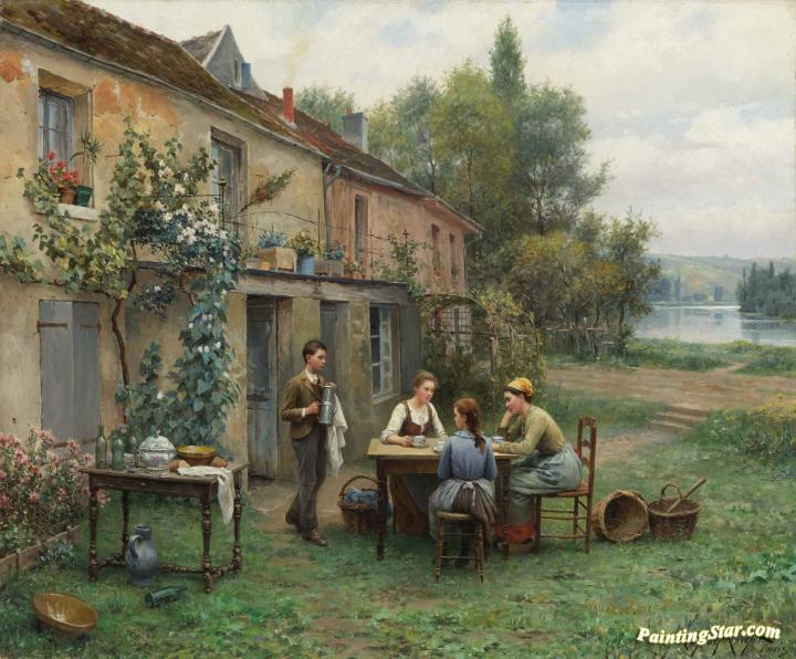 Coffee in the Garden, Art Painting by Daniel Ridgway Knight