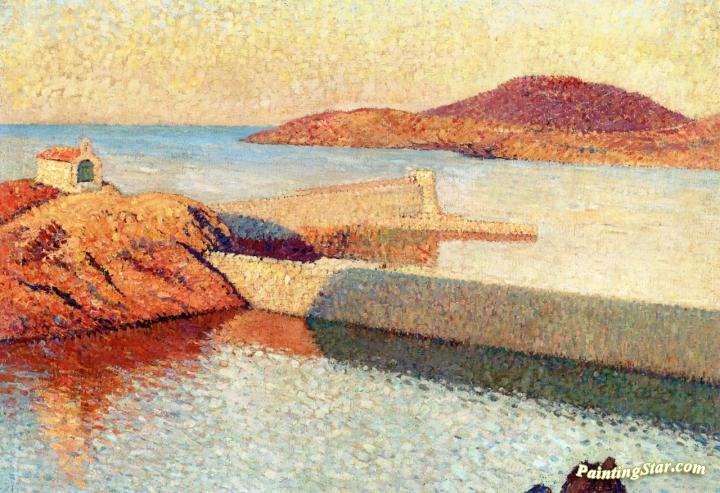 Collioure la chapelle sur la digue - entree du Port Collioure, Art Painting by Henri Martin