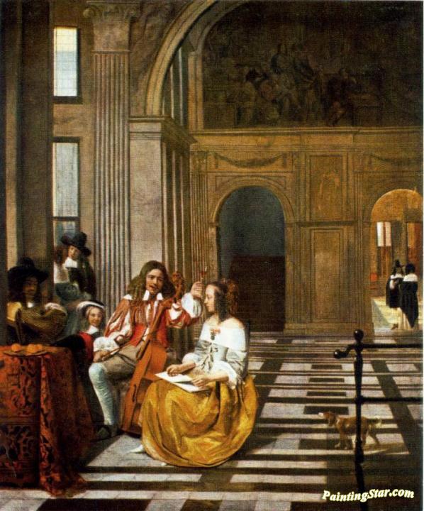 Company Making Music, Art Painting by Pieter de Hooch