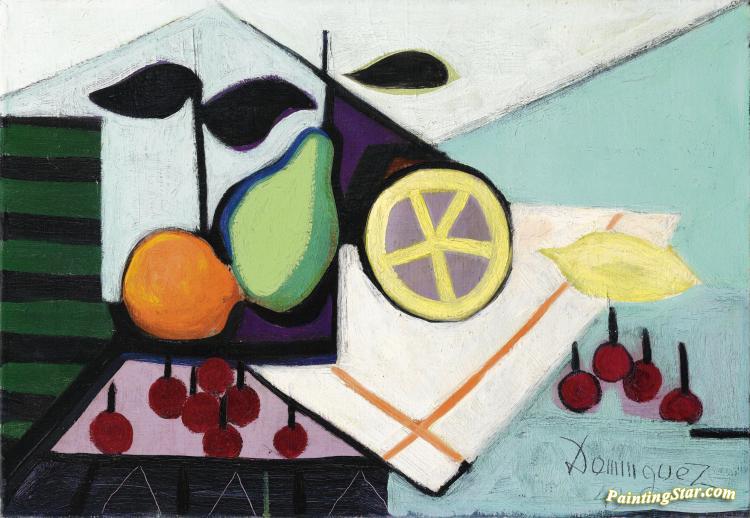 Composition Aux Citrons Et Aux Cerises, Art Painting by Oscar Dominguez
