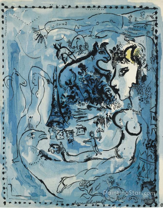 Composition Bleue, Art Painting by Marc Chagall