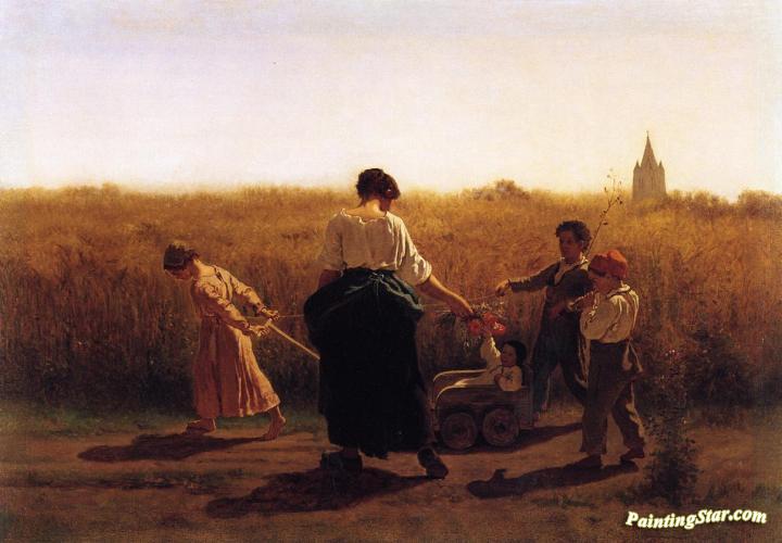 Copy after Jules Breton's 'Le Depart les Champs', Art Painting by Eastman Johnson
