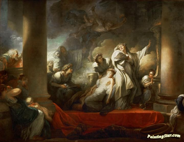 Coresus Sacrificing Himself to Save Callirhoe, Art Painting by Jean Honore Fragonard