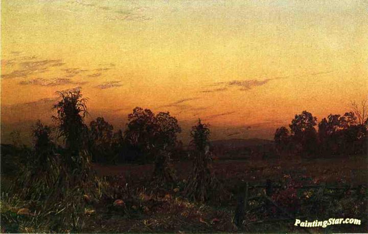 Corn Shocks and Pumpkins, Art Painting by William Trost Richards