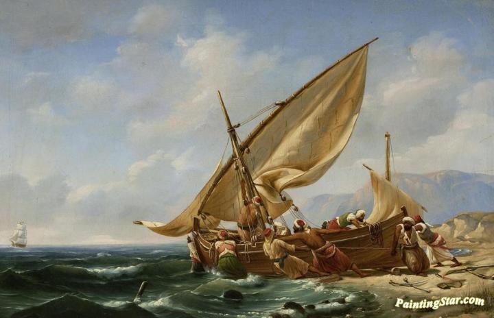 Corsairs Setting Sail, Art Painting by Niels Simonsen