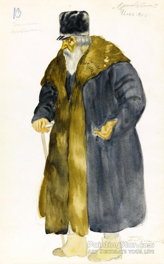 Costume Design For Ilya In The Power Of The Fiend, 1919, Art Painting by Boris Mikhailovich Kustodiev