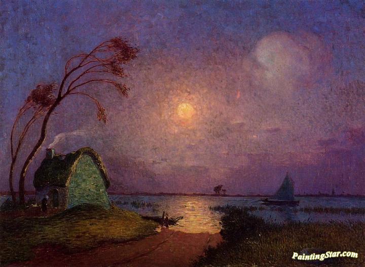Cottage in the Moonlight in Briere, Art Painting by Ferdinand du Puigaudeau