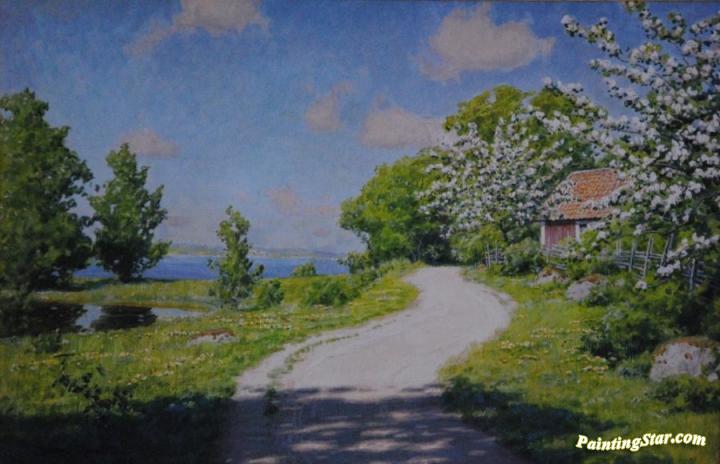 Cottage with lake and trees, Art Painting by Johan Krouthén